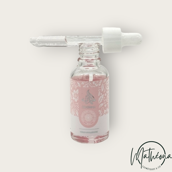 D'DONNA ACIDE HYALURONIQUE PUR. Obtenu par biofermentation, cet actif régénérant est reconnu pour retenir jusqu'à 100 fois son poids en eau.